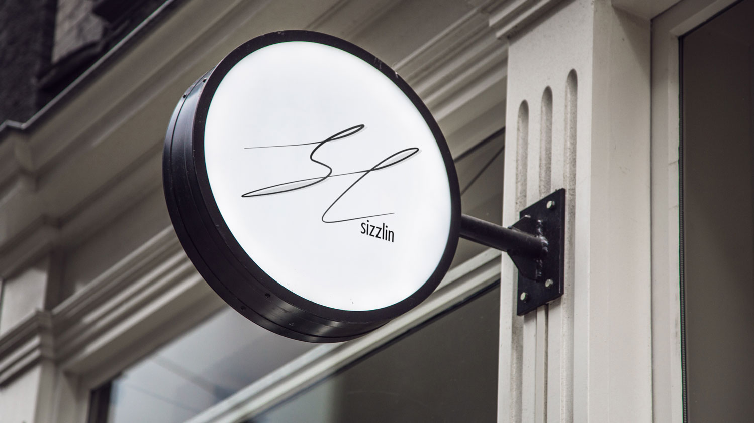 The logo represents this by having a tasteful handwritten “SL” overlapping on “sizzlin” in a modern type face.